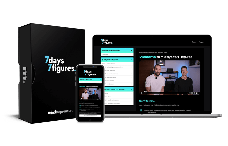 7-Days to 7-Figures is a new program where you unlock 7-Secret Mindset Principles to gain maximum clarity, feel unlimited motivation, build unshakable confidence, and form identity shifting beliefs so you can finally master all areas of your life and business.